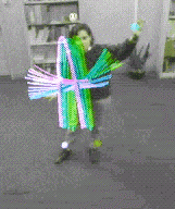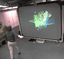 demonstrating her DanceSpace installation, with musical software written by Akira Kotani.